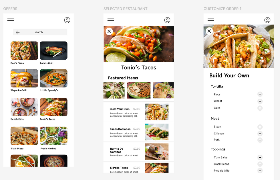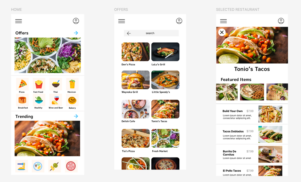 During my Google UX Design course, I created an app that made ordering food efficient and timely. This vibrant app makes for an intuitive and smooth navigation process, with content designed for clarity.